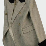 Impresivno sako s dvostrukim kopčanjem koje donosi bezvremensku eleganciju u svaku pojavu. Ima elegantan ovratnik s kontrastnom teksturom i gumbe sprijeda koji upotpunjuju sofisticirani izgled. Idealno za casual chic kombinacije, ali i za poslovne prilike.