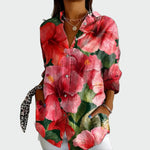 Košulja dugih rukava s intenzivnim cvjetnim uzorcima u nijansama crvene i ružičaste dodaje živahnost i ljetnu atmosferu svakom izgledu. Klasična ovratnik i kopčanje sprijeda čine je svestranom, idealnom za ležerne, ali i elegantnije prilike.
