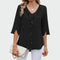 Elegantna crna bluza s romantičnim volanima koji dodaju pokret i ženstvenost. V-izrez s diskretnim volanima sprijeda naglašava stil, dok 3/4 rukavi s prorezom sa strane daju modernu notu. Idealna za večernje izlaske, ali i chic pojave u uredu, lako se kombinira s hlačama ili suknjom za fin rezultat.