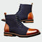 Muške kožne oxford cipele s vezicama u elegantnoj kombinaciji tamnoplave i smeđe boje, koje zrače bezvremenskom sofisticiranošću. Sjajna smeđa završnica na vrhu i peti daje premium karakter, dok izdržljiva potplat osigurava stabilno hodanje. Idealna opcija za business casual, ali i za formalnije prilike.