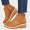 Ženske **kožne čizme s platformom** u crnoj boji koje kombiniraju eleganciju i udobnost. Njihov minimalistički dizajn s **bočnim patentnim zatvaračem** osigurava lako obuvanje, dok **stabilna wedge potplat** daje visinu bez umaranja. Idealne za svakodnevne i večernje izlaske s modernim urbanim karakterom.