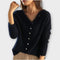 • Asimetrični Dizajn: Asimetrično zatvaranje s dugmadi daje ovom klasičnom kardiganu modernu notu.