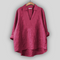 Elegantna lanena bluza koja isijava minimalističku eleganciju i bezvremenski stil. Duboki V izrez s elegantnim ovratnikom daje modernu liniju, dok labavi kroj osigurava udobnost i lakoću pokreta. Asimetrični završetak s dužim stražnjim dijelom upotpunjuje elegantnu estetiku.