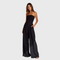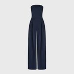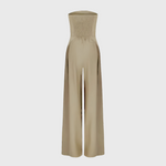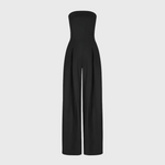 Ovaj sofisticirani kombinezon bez naramenica savršen je spoj moderne elegancije i udobnosti. Sa ženstvenim krojem koji naglašava figuru i širokim nogavicama koje pružaju fluidan pokret, predstavlja idealan izbor za večernje izlaske, svečane prigode ili posebne trenutke kada želite ostaviti snažan dojam. Diskretni džepovi dodaju praktičnost bez narušavanja glamura.