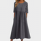 Ova haljina odiše jednostavnom elegancijom i bezvremenskim stilom. Lepršavi kroj pruža potpunu udobnost, dok diskretan dizajn omogućuje lako kombiniranje s različitim modnim dodacima. Savršena je za šetnje gradom, opuštene ljetne dane ili posebne prigode kada želite izgledati dotjerano bez napora.
