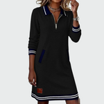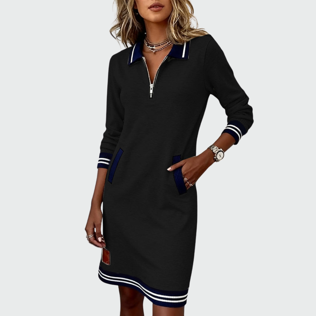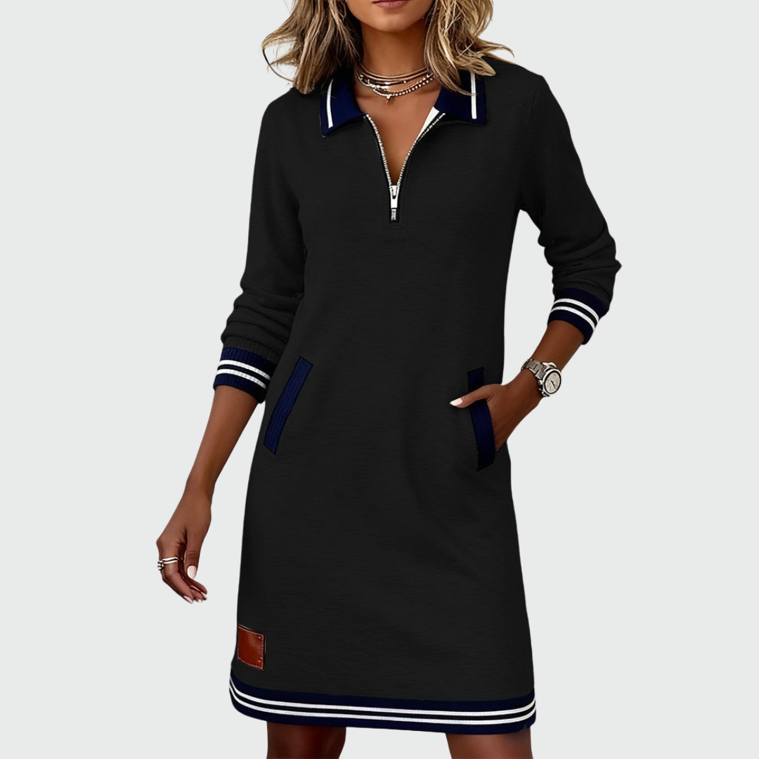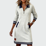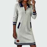 Ovaj sportsko-elegantni model savršen je izbor za žene koje žele udobnost bez odricanja od stila. Slobodan kroj laska figuri, dok kontrastni detalji na rukavima, džepovima i rubu daju moderan i svjež izgled. Zahvaljujući praktičnom zip zatvaranju oko vrata, lako možete prilagoditi outfit svom raspoloženju – nosite ga ležerno ili s dozom elegancije. Odlično se kombinira uz tenisice ili gležnjače, a može poslužiti i kao šik haljina za opušten vikend.