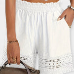 Prozračne i ženstvene, ove ljetne šortse kombiniraju romantične detalje čipke s praktičnošću džepova. Njihova lagana linija i posebna tekstura čine ih idealnima za šetnje, odmore i opuštene ljetne trenutke.