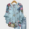Istaknite svoju svježinu i ženstvenost s ovom bluzom u plavoj nijansi, ukrašenom bogatim cvjetnim uzorcima u nijansama ružičaste, ljubičaste i bijele. Romantične detalje na rukavima s volanima dodaju pokret i eleganciju, dok opušteni kroj čini ovu bluzu idealnom za sve svakodnevne i posebne prilike.