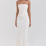 Elegantna i ženstvena haljina s korseterom koja ističe siluetu i pruža neodoljivu eleganciju. Prilagođeni kroj naglašava obline, dok čipkasti detalji dodaju romantiku i luksuz. Idealna za vjenčanja, službene događaje i jedinstvene večeri.