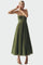 Elegantna i ženstvena haljina s tankim naramenicama i uskim korzetom koji ističe siluetu. Plisirana suknja midi dužine pruža jedinstveni pokret i bezvremensku eleganciju. Idealna za elegantne prigode, od vjenčanja do službenih događanja.