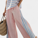 Set od lanenog bambusa Daisy Mediteranski u nježnoj ružičastoj boji s elegantnim plavim prugama