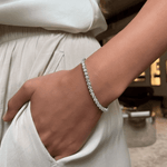 Izdignite svoju eleganciju s Rivière narukvicom koja sadrži sjajni set kamenčića. Prekrivena 14k zlatom, ova sofisticirana narukvica nudi provjereni glamur i rafinirani dodir. Idealna za bilo koju priliku, dodaje savršenu kombinaciju luksuza i stila vašoj kolekciji dodataka.
