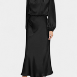 Ženska, elegantna i s rafiniranim prisustvom, haljina Marija kombinira fluidnu maxi siluetu s strukturiranim visokim ovratnikom i suknjom s cvjetnim detaljima. Njen dizajn je idealan za one koji žele istaknuti sofisticiranost u posebnim prilikama bez odricanja od udobnosti.