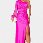Obuci je i osjeti kako te elegancija obavija, pretvarajući svaki korak u izjavu čiste sofisticiranosti. S njezinim asimetričnim izrezom, oblikovanom draperijom i vezanom strukom, Andrea se kreće fluidno kako bi istaknula tvoju figuru i ostavila trag na svakoj posebnoj prigodi.