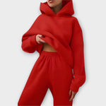 Ovaj set s oversized duksericom i hlačama visokog struka savršena je definicija udobnosti s stilom. Idealno za dane opuštanja, putovanja ili onaj ležerni street look, spaja moderni izgled s udobnošću koju tražite. Mekana tekstura i suvremeni kroj pretvaraju osnovno u bitno.