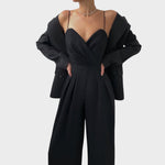 Kombinezon „Zdenka“ je savršeni izbor za žene koje žele istaknuti svoju osobnost i stil. Moderan kroj naglašava liniju tijela i pruža udobnost, dok dizajn odiše odvažnošću i elegancijom. Može se nositi na večernje izlaske, koktele ili posebne prilike kada želite zasjati i privući pažnju.