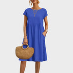 Ova haljina Ankica kombinira jednostavan kroj s praktičnim džepovima, pružajući udobnost i stil bez kompromise.