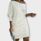 Sjajna Haljina za Noć idealna je za one koji žele istaknuti moderni izgled pun stila. S ležernim krojem, dugim rukavima i asimetričnim izrezom koji otkriva jedno rame, ovaj model spaja udobnost i senzualnost. Sjajni završetak zapanjujuće hvata svjetlost, čineći je savršenom za zabave, večere ili posebne izlaske.