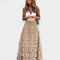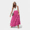 Jedinstvena suknja koja zrači ležernošću i ljetnim stilom. S visokim strukom i posebnim mrežastim rubom, dodaje boho karakter svakoj kombinaciji i idealno se kombinira s crop topovima ili ležernim košuljama.
