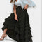 Lagano i upečatljivo, ova višeslojna suknja od tila kombinira romantiku i eleganciju. S visokim strukom i klasičnom A-siluetom, pruža pokret i finu notu svakom koraku, idealna za istaknute prilike.
