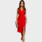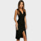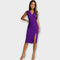 utjelovljuje eleganciju i dinamiku. Njeno impresivno rezanje s plisiranim detaljima na dekolteu i elegantnim prorezom na nozi stvara finu i ženstvenu siluetu. Idealno za službene večernje pojave i posebne prilike.