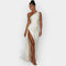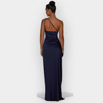 Ova haljina isijava suptilnu luksuznost s glatkim satenom i elegantnom linijom. Idealna za večernje izlaske i posebne prigode koje zahtijevaju profinjenost i stil.