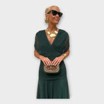 Haljina koja kombinira eleganciju i bezvremensku finu, pružajući savršeni završni dodir svakoj pojavi. Fleksibilan dizajn čini je idealnom za sve prilike, od ležernih izdanja do elegantnijih večernjih izlazaka. S udobnim krojem i minimalističkom estetikom, predstavlja osnovni komad svake garderobe.