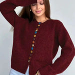 Pozdravite Ema Cardigan s Gumbima—vremenski nepromjenjiv komad za slojevito oblačenje s razigranim zaokretom. Dizajniran za žene koje cijene udobnost s osobnošću, ovaj cardigan od mekog pletenog materijala i šarenih gumba donosi toplinu i veselje u vašu svakodnevnu garderobu.