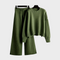Ovaj set od pletenine kombinira mekoću i stil u jednom izgledu. Oversized gornji dio s modernim krojem i široke hlače stvaraju opuštenu, ali sofisticiranu siluetu, savršenu za dane kada želiš biti udobna bez odricanja od elegancije.