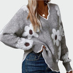 Valentina – Elegantni V-Izrez Cvjetni Pulover