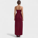 Ova haljina bez naramenica ističe vašu figuru sa strukturiranim dekolteom i plisiranom suknjom koja pleše s svakim korakom. Savršena za proslave gdje ste vi u središtu pažnje.