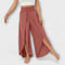 Sa fluidnim dizajnom i rezovima koji podsjećaju na omotnu suknju, ove hlače su savršene za one koji traže slobodu, svježinu i stil u jednom izgledu. Lagana tkanina prati pokrete tijela s elegancijom, dok visoki struk ističe siluetu. Idealni komad za vruće dane i opuštene kombinacije s daškom sofisticiranosti.