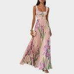 Eterični romantizam s siluetom koja graciozno i ženstveno teče. Haljina Danica kombinira elegantan kvadratni izrez s plisiranim chiffon materijalom i cvjetnim uzorkom u lavandastim tonovima koji evocira svijetle poslijepodne i posebne trenutke na otvorenom.