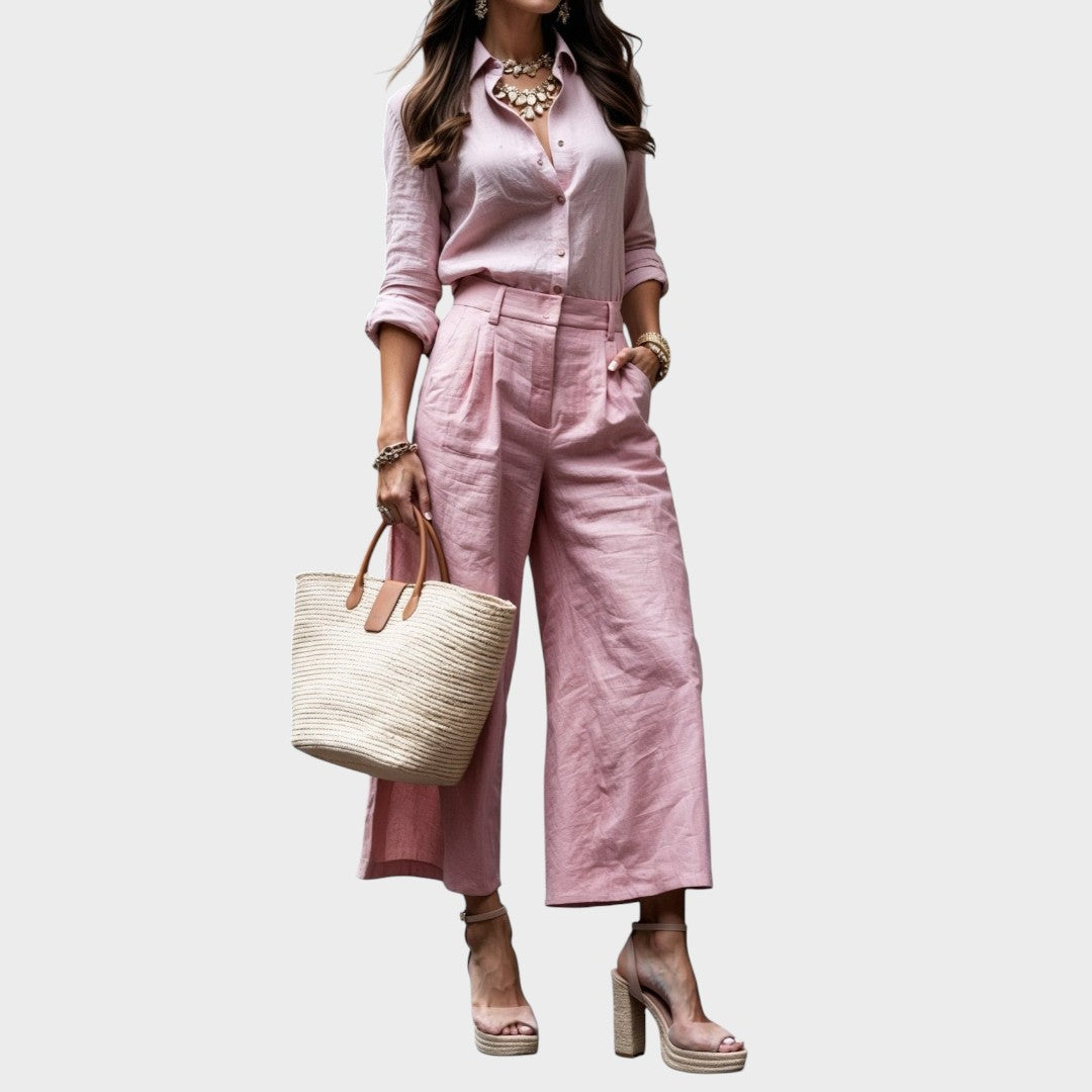 Jelena - Ružičaste Capri hlače i labava košulja od lana