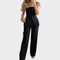 Ovaj elegantni set, sastavljen od strapless topa i ravno krojenih hlača, savršena je kombinacija stila i udobnosti. Top s modernim rezom naglašava siluetu, dok hlače visokog struka produžuju figuru i daju sofisticiran izgled. Idealan izbor za modne kombinacije koje spajaju ženstvenost i profinjenost, bilo da je riječ o večernjem izlasku, koktel zabavi ili posebnom događaju.