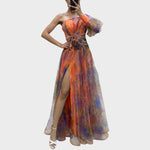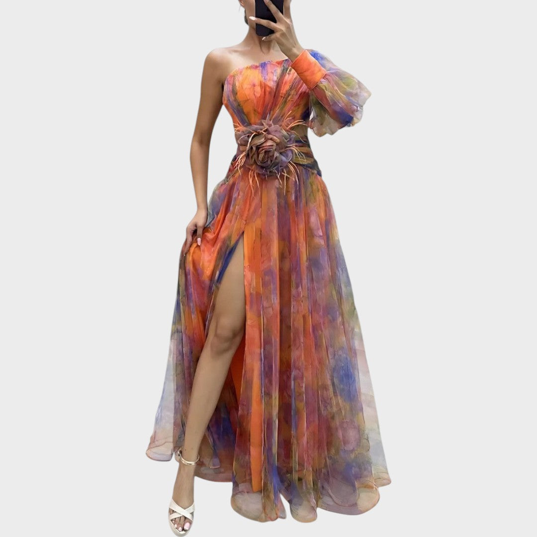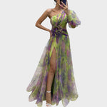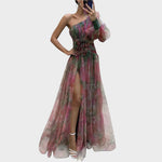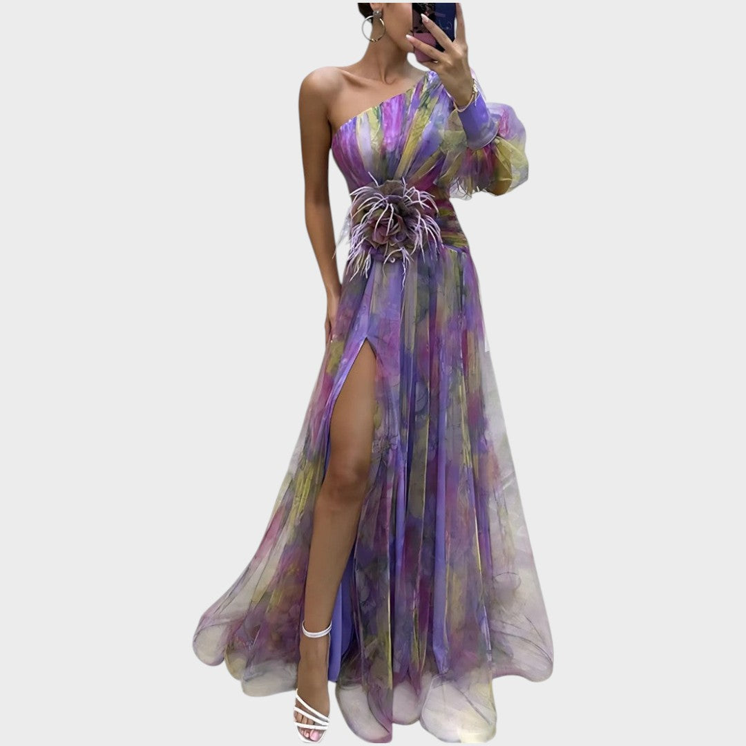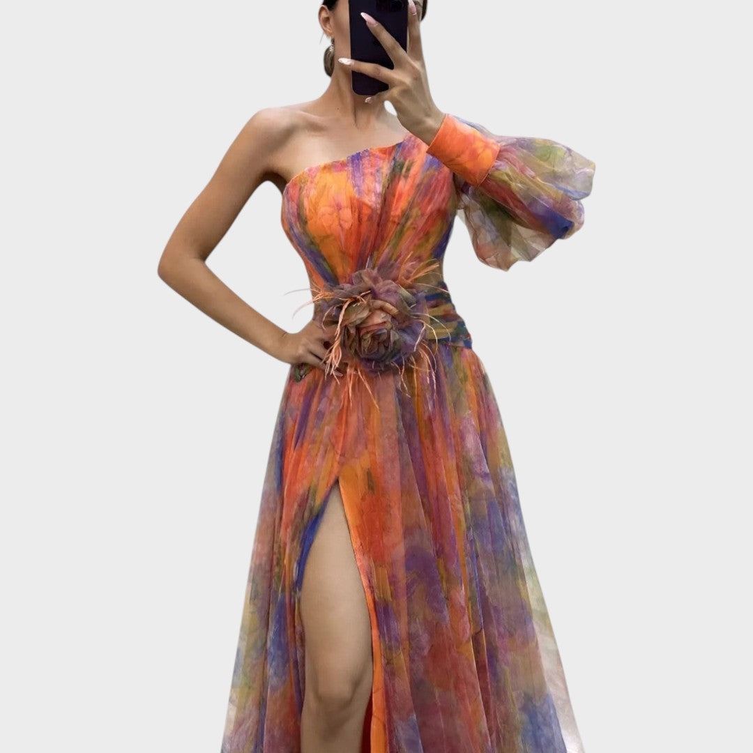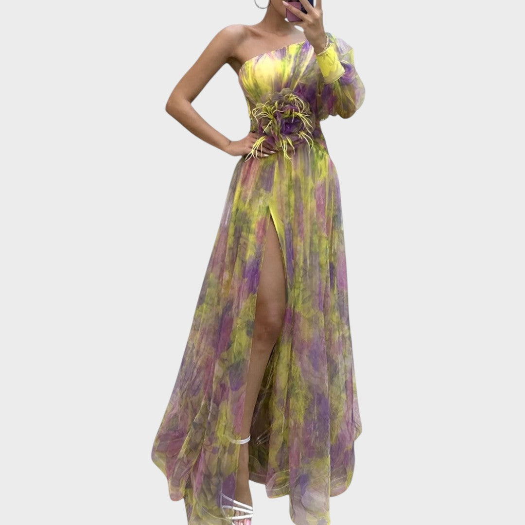 Milka Asimetrična maxi haljina s jednim ramenom i umjetničkim uzorkom